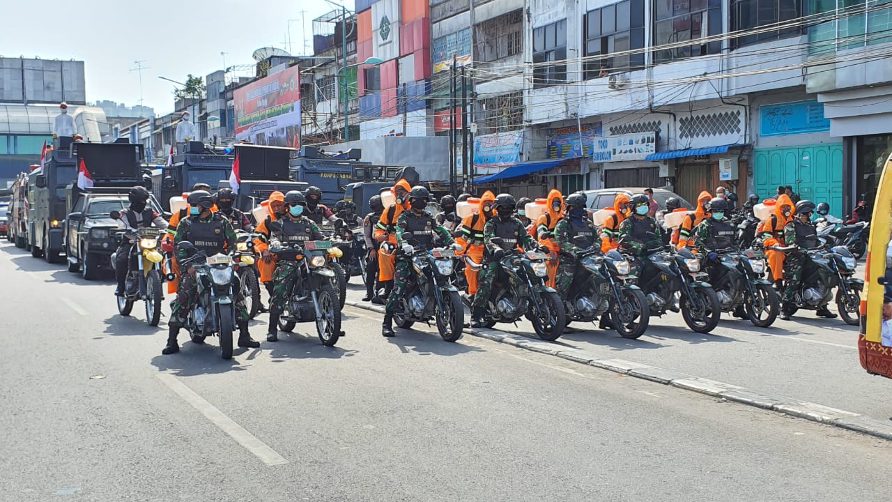 Danlanud Soewondo Bersama Forkopimda Sumut Ikuti Apel Penyemprotan Disenfektan Secara Masif di Kota Medan