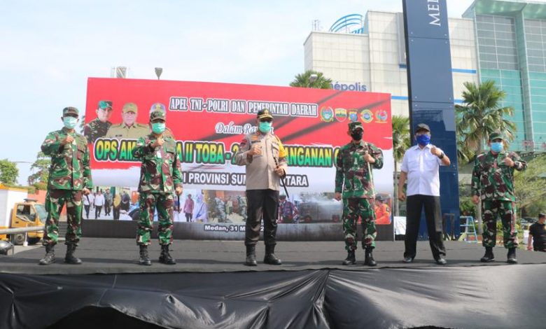 Apel Kegiatan Penyemprotan Disinfektan secara Masif dikota Medan ini dipimpina oleh Gubernur Sumut, yang turut dihadiri oleh Pangdam I BB, Kapolda Sumut, Danlantamal I Belawan, Pangkosekhanudnas III Medan, Danlanud Soewondo, Kajati, Kapengti, Kabinda Sumut dan seluruh jajaran TNI, Polri dan BPBD sumut.