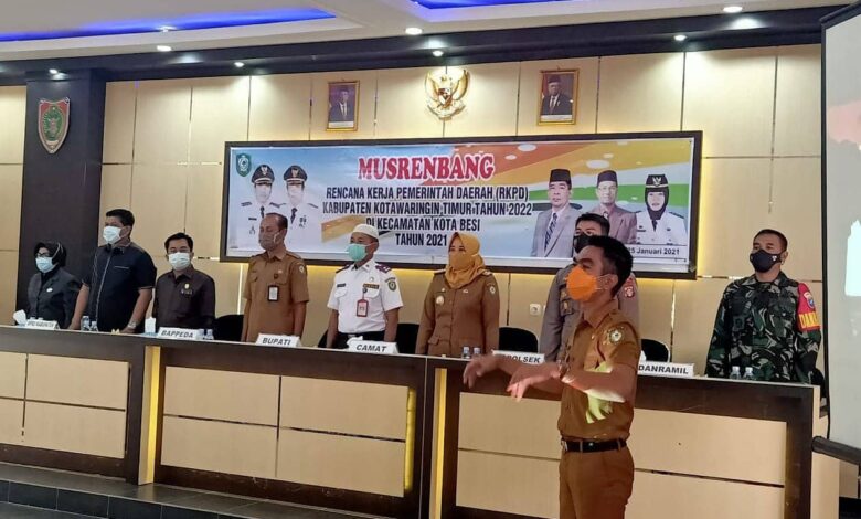Danramil 1015-10/Kbs Lettu Inf Suprianto menghadiri undangan Musyawarah Rencana Pembangunan Desa (Musrenbang Des) Kecamatan Kotabesi TA. 2022 bertempat di Aula Kantor Camat, Senin (25/01)