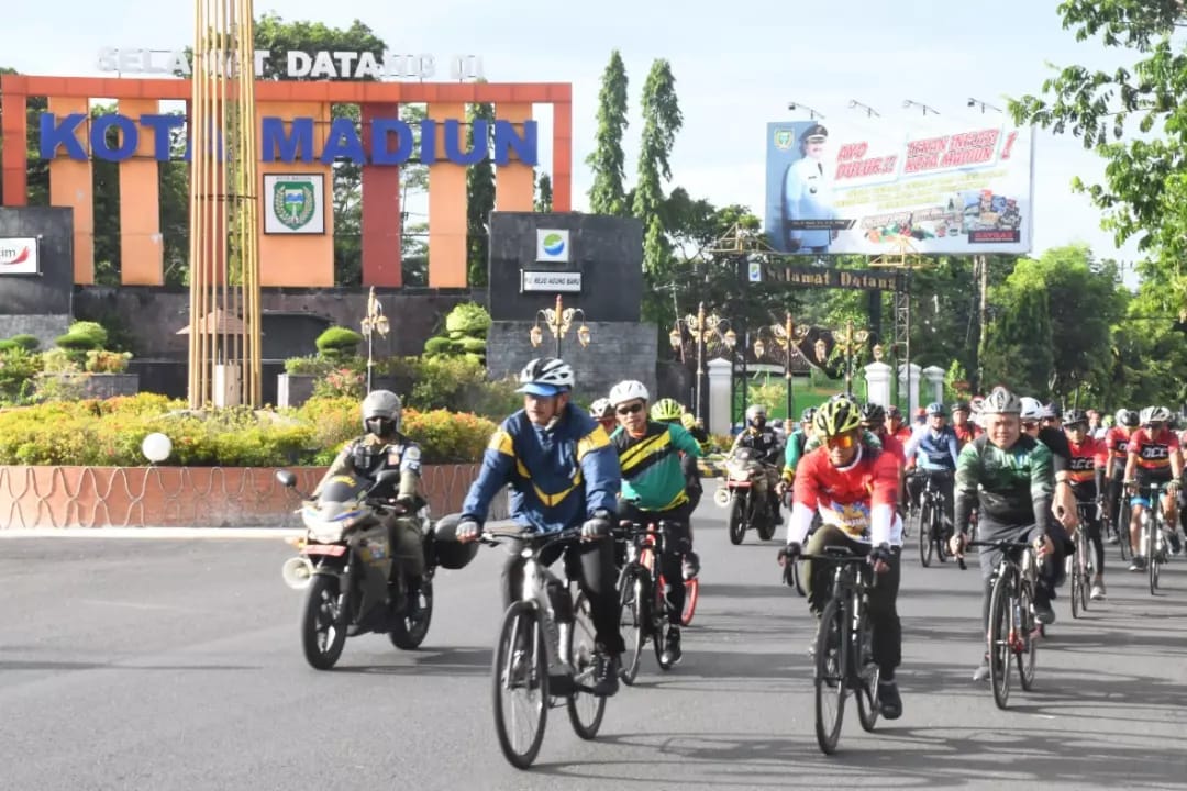 Tampak pula personel TNI-Polri di wilayah Madiun dan berbagai komunitas sepeda yang turut serta dalam kegiatan tersebut.