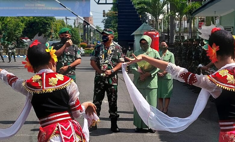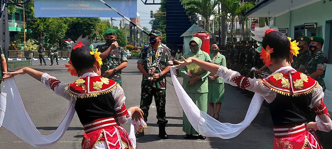 Kedatangan Danrem 083/Bdj langsung di sambut oleh Dandim 0820/Probolinggo Letkol Arh Arip Budi Cahyono berserta Ketua Persit cabang XXXIV Kodim 0820