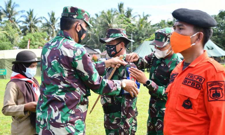 Sebanyak 445 personel gabungan TNI, BPBD, Dinas Kesehatan, Damkar, Dinas Sosial dan ormas kepemudaan ambil bagian dalam latihan Penanggulangan bencana alam yang diselenggarakan Korem 142/Tatag selama 5 hari.