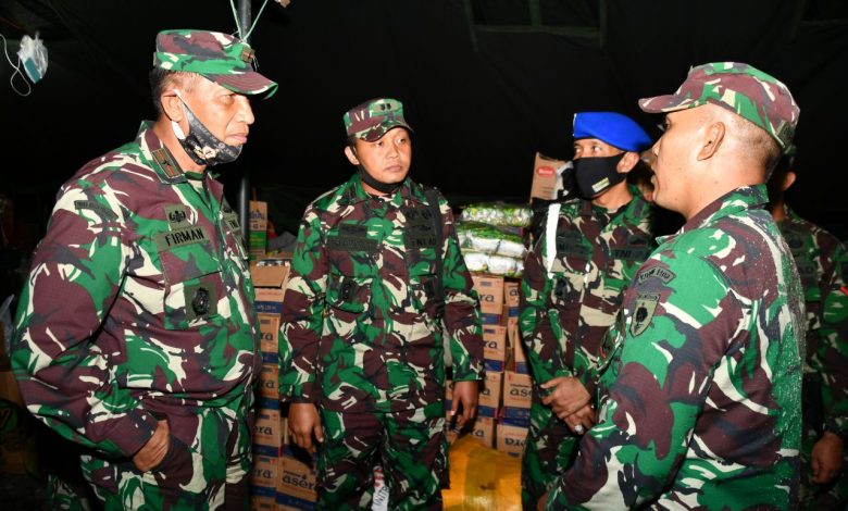 Luwu Utara. .Sulsel– Danrem 142/Tatag Brigjen TNI Firman Dahlan, S.I.P bersama rombongan malam ini tiba di Posko penanganan darurat Bencana Alam banjir Bandang di Desa Radda Kecamatan Baebunta Kab. Luwu Utara langsung menyerahkan bantuan 50 pasang sepatu boat untuk relawan dan sembilan bahan pokok untuk kebutuhan pengungsi. Rabu ( 15/7 )