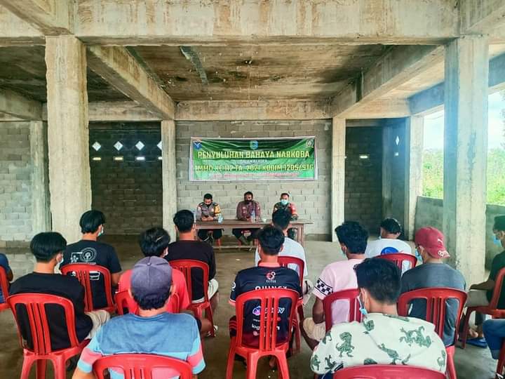 Bersinergi TNI dan Polri untuk melaksanakan penyuluhan tentang bahaya narkoba kali di desa Ampar Bedang, kecamatan Binjai Hulu, kabupaten Sintang, Kalbar, pada Rabu (06/10/2021).