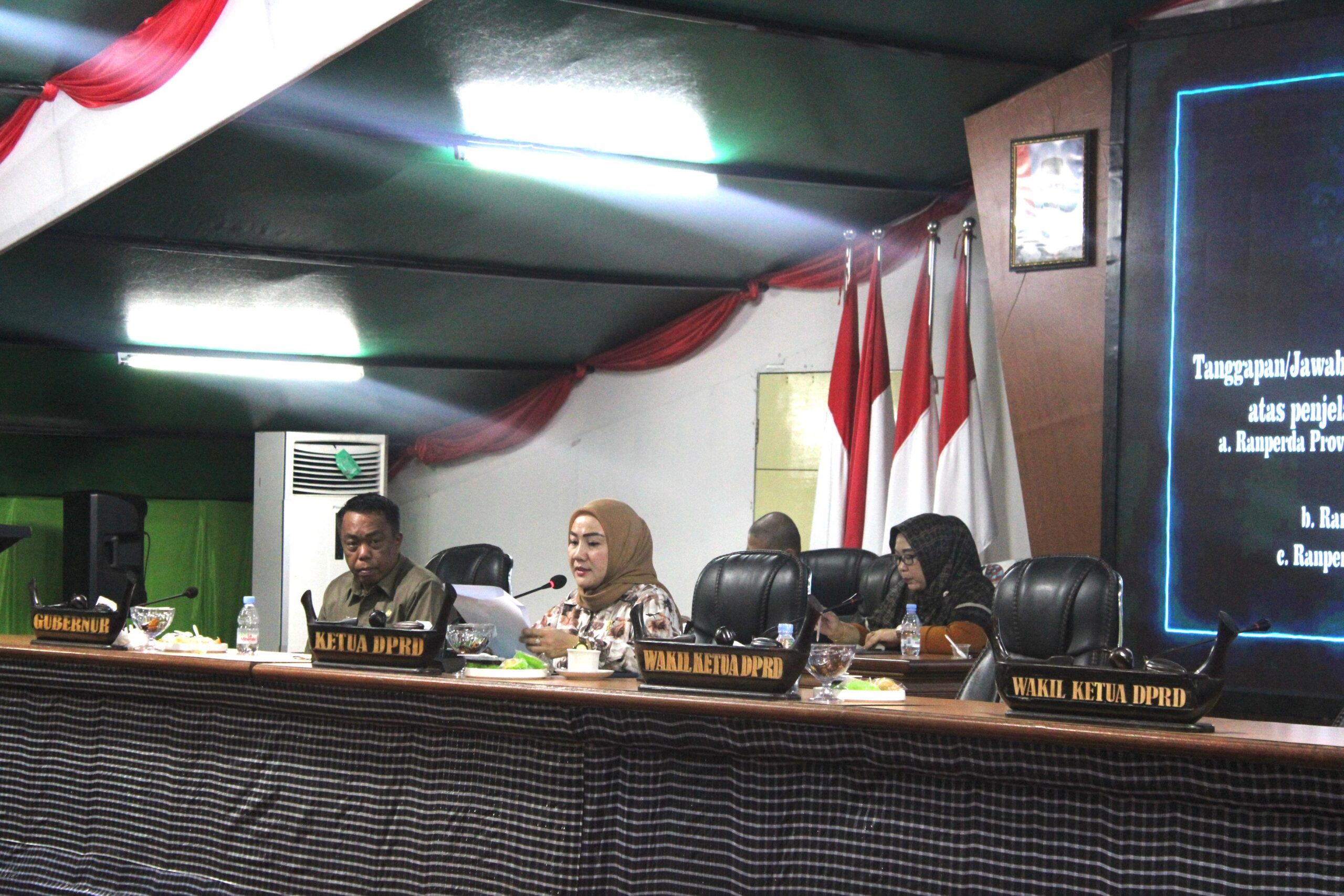 Dua agenda rapat paripurna tersebut yakni mendengarkan jawaban Gubernur atas Pandangan Umum Fraksi-Fraksi DPRD terhadap 2 (dua) Ranperda Provinsi Sulawesi Barat yaitu: