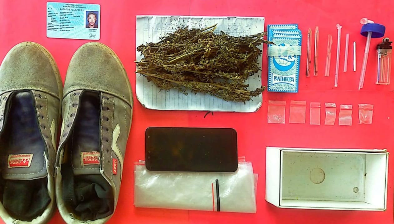 “Saat penggeledahan terduga pengedar BP, ditemukan barang bukti berupa puntungan ganja, batang ganja kering, kertas papir, dan satu unit handphone,” kata Iptu Iwan mewakili Kapolres Tanggamus AKBP Siswara Hadi Chandra, S.I.K.
