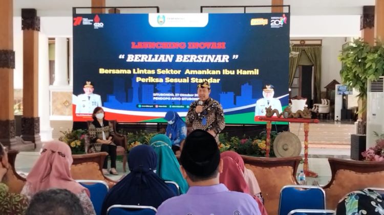 SITUBONDO JAWA TIMUR, BeritaNasional.id – Untuk menekan angka kematian ibu hamil, Dinas Kesehatan (Dinkes) Kabupaten Situbondo launching inovasi program aplikasi Bersama Lintas Sektor Amankan Ibu Hamil Periksa Sesuai Standar (Berlian Bersinar, red) yang berlangsung di Pendopo Aryo Situbondo, Kamis (27/10/2022).