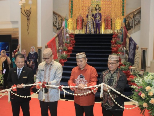 Ajang promosi bertajuk Discover Gorontalo dalam rangka memperingati HUT ke-50 Hotel Borobudur itu dihadiri dan dibuka oleh Menteri Pariwisata dan Ekonomi Kreatif (Menparekraf) RI, Sandiaga Salahudin Uno, yang ditandai dengan pengguntingan pita didampingi Penjabat Gubernur Gorontalo Ismail Pakaya di depan tangga lobi utama hotel, Selasa (4/7/2023).