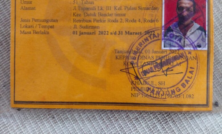 Dan menyetorkan hasil pungutan Retribusi setiap hari kepada bendahara penerima Dinas Perhubungan Kota Tanjungbalai sesuai dengan surat perjanjian kerja, yang mana Surat tugas juru parkir tersebut dikeluarkan oleh Kepala Dinas Perhubungan Kota Tanjungbalai Khairul, SH tertanggal 3 Januari 2022.