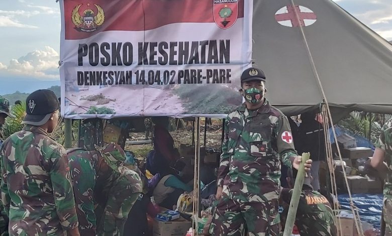 Dandenkesyah juga mengatakan, Satuan Kesehatan TNI – AD dari Denkesyah 14.04.02 Pare – pare Kesdam XIV/Hasanuddin telah mendirikan Posko Kesehatan di Desa Meli tepatnya diantara tenda tenda pengungsi agar mudah menjangkau pelayanan.