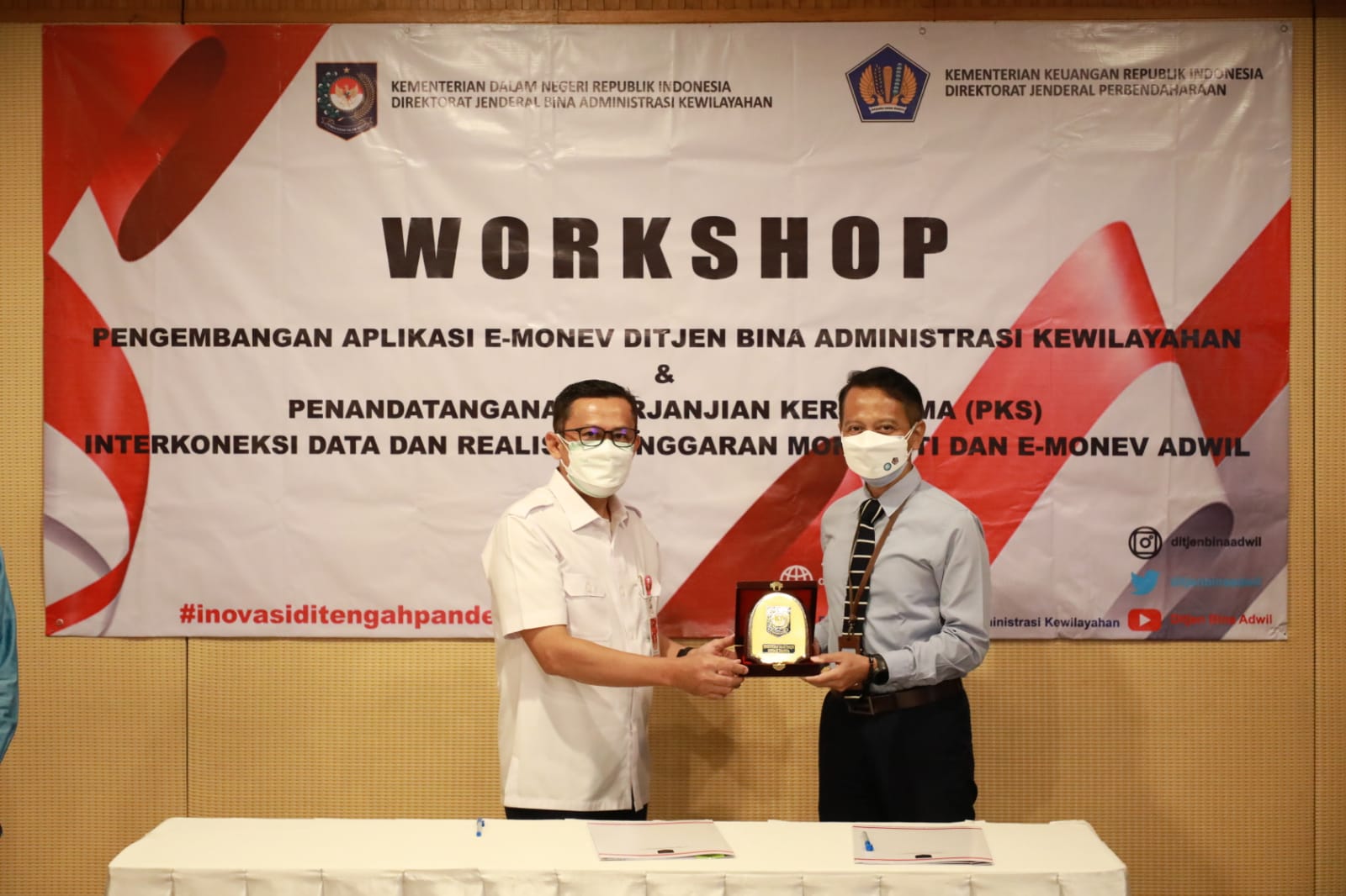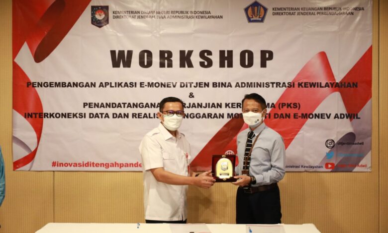 Ditjen Bina Adwil dan Ditjen Perbendaharaan Tandatangani PKS Interkoneksi Data Monsakti ke E-Monev Ditjen Bina Adwil