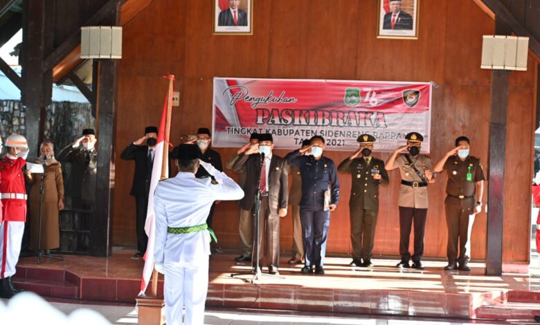 BeritaNasional.ID, Sidrap – Bupati Sidrap, H. Dollah Mando, mengukuhkan Pasukan Pengibar Bendera Pusaka (Paskibraka) 2021 tingkat Kabupaten Sidrap di Baruga Rujab Bupati, Senin 16 Agustus 2021 sore.