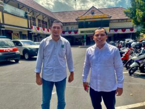 Ketua dpc PKB Lumajang Anang Ahmad sayfuddin bersama sekretaris dpc PKB Eko Adis Prayoga saat berada di halaman Mapolres lumajang