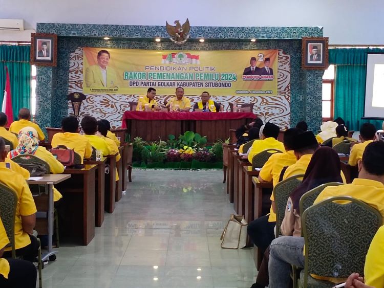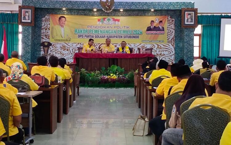 BeritaNasional.ID – SITUBONDO JATIM – Dewan Pimpinan Daerah (DPD) Partai Golkar Kabupaten Situbondo melaksanakan Pendidikan Politik dan Rakor Pemenangan Pemilu 2024 yang berlangsung di Gedung Serbaguna Wisata Bahari, Pasir Putih, Kecamatan Bungatan, Kabupaten Situbondo, Sabtu (9/12/2023).
