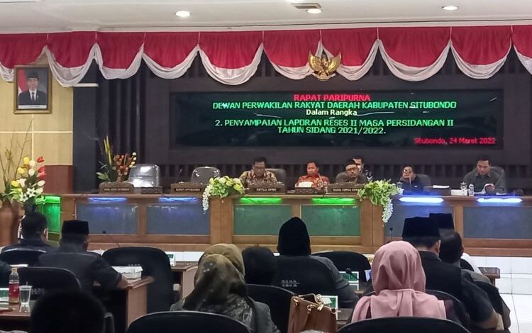 BeritaNasional.id – SITUBONDO JAWA TIMUR – Dewan Perwakilan Rakyat Daerah (DPRD) Kabupaten Situbondo melaksanakan rapat paripurna pengumuman dan pembentukan susunan Keanggotaan Anggota DPRD dalam Alat Kelengkapan Dewan (AKD) dan Penyampaian Laporan Reses II Masa Persidangan II Tahun Sidang 201/2022, Kamis (24/03/2022).