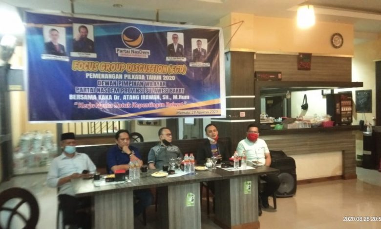 Sulbar— Dewan Pengurus Wilayah Partai NasDem Provinsi Sulawesi Barat menggelar kegiatan Forum Group Discusion bertajuk Pemenangan Pilkada Tahun 2020 dengan tema Kerja nyata untuk