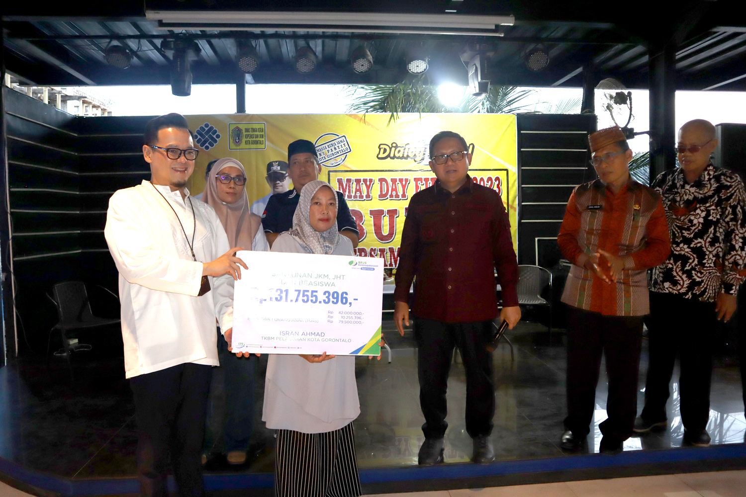 BeritaNasional.ID, KOTA GORONTALO – Sebanyak dua orang buruh yang meninggal dunia di Kota Gorontalo menerima santunan dari Badan Penyelenggara Jaminan Sosial Ketenagakerjaan atau BPJamsostek Cabang Gorontalo yang diterima oleh ahli waris kedua buruh tersebut saat peringatan May Day Fiesta yang digelar di Green Borneo Kota Gorontalo, Jum’at (26/5).