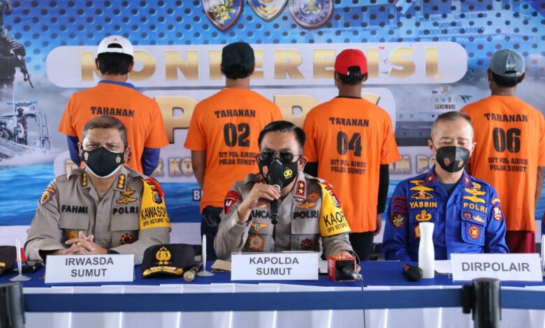 BeritaNasional.ID Medan – Kapolda Sumut Irjen Pol RZ Panca Putra Simanjuntak bersama Dirpolair Korpolairud Baharkam Polri Brigjen Pol Yassin Kosasih, memimpin press rilis penangkapan kapal ikan asing di Selat Malaka.