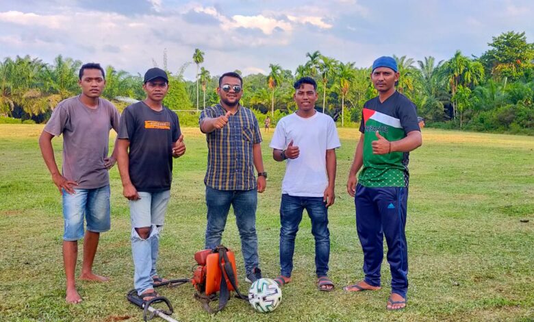 Lebih lanjut kata Mustafa, saat ini para pemuda sedang bergotong royong membersihkan lapangan bola.
