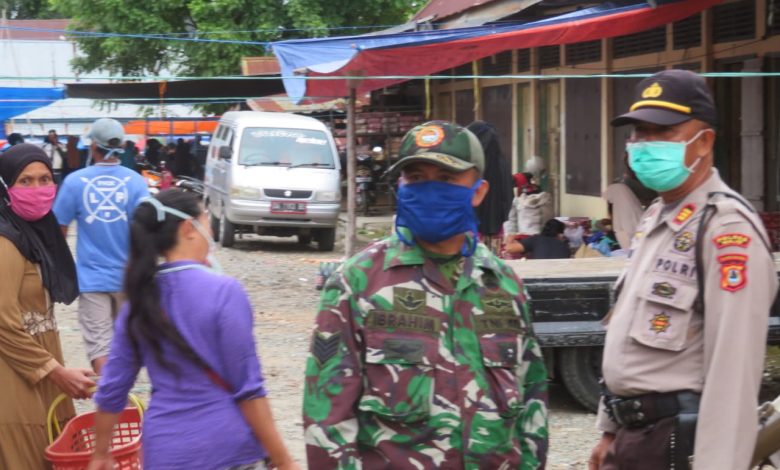 Sementara Kapolsek Pammana AKP Sayyeh Gurais yang di dampingi serma Ibrahim dari koramil 1406-06 Pammana menghimbau kepada seluruh pengunjung pasar di Kampiri untuk selalu mewaspadai penularan virus corona atau covid-19. (Basir)