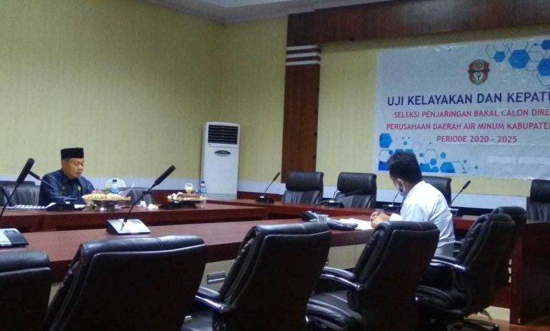 Pelaksanaan uji kelayakan dan kepatutan Bakal Calon Direktur PDAM Kabupaten Wajo periode 2020-2025 terlaksana di ruang Pimpinan Kantor Bupati Wajo Jl. Rusa Sengkang, Kecamatan Tempe, Kabupaten Wajo. Selasa (1/9/2020).