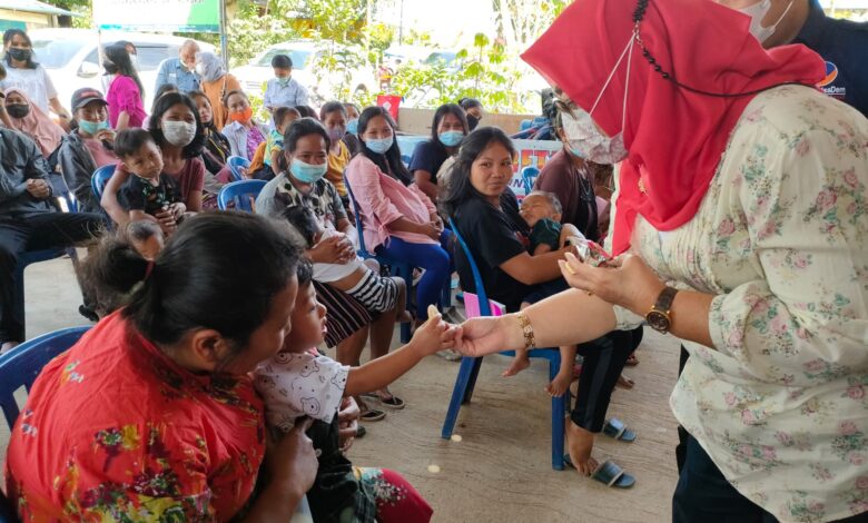 Selain menggelar Vaksinasi, melalui Kesempatan ini Hj.Enny Anggraeni Anwar juga menyempatkan diri berbagi bantuan Makanan Tambahan kepada puluhan ibu Hamil (bumil) dan Balita.