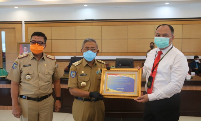 Dalam rapat tersebut , Pemprov Sulbar menerima tropi penghargaan daei Kepala Kanwil Ditjen Perbendaharaan Pajak Sulbar sebagai perwakilan dari Kementrian Keuangan