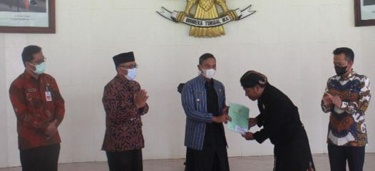 Momentum tersebut menjadi kesempatan penyerahan Akta Notaris dari Kemenkumham AHU melalui Dinas Kebudayaan Provinsi Jawa Timur dan Forum Komunikasi Pangarsa pranatacara dan Pamedar Sabda (FKKP) Jatim.