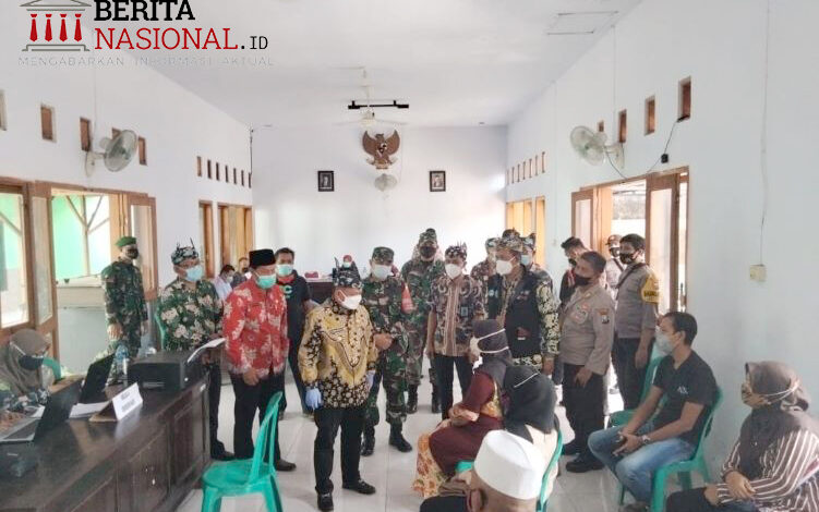 BeritaNasional.ID – SITUBONDO, JAWA TIMUR,- Bupati Situbondo Karna Suswandi, Kapolres Situbondo AKBP Ahcmad Imam Rifai serta Dandim 0823 Situbondo Letkol Inf Neggy Kuntagina meninjau pelaksanaan serbuan vaksinasi yang berlangsung di Puskesmas Panji, Balai Desa Curah Jeru dan Kelurahan Mimbaan, Kecamatan Panji, Kabupaten Situbondo, Kamis (8/7/2021).