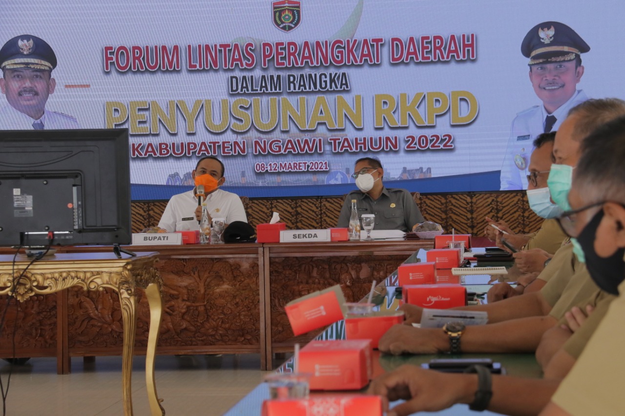 BeritaNasional.ID, Ngawi – Pemerintah Kabupaten Ngawi Melalui Bappelitbang gelar Forum Lintas Perangkat Daerah untuk menyusun Musyawarah Rencana Pembangunan Daerah (Musrenbangda dibuka langsung Bupati Ngawi, Ony Anwar, ST., MH yang digelar di Pendopo Wedya Graha, Senin (8/03/2021)