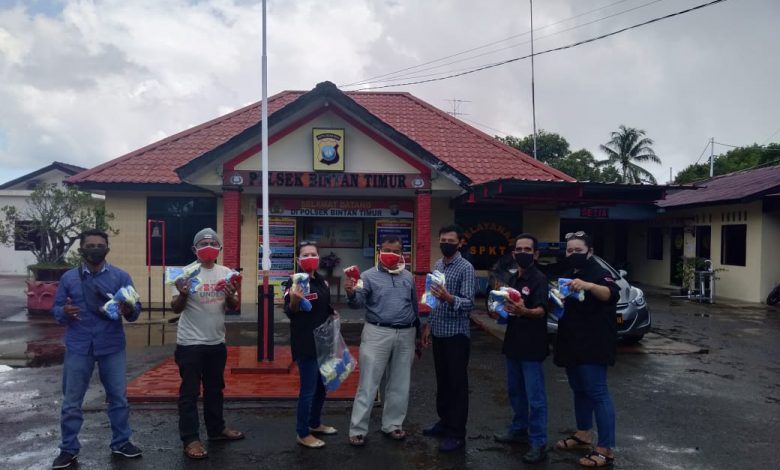BeritaNasional.ID, Bintan – Forum Pers Independen Indonesia Kabupaten Bintan (FPII) didampingi Polsek Bintan Timur membagikan masker pada pengendara yang melintas dibundaran Tugu Antam Kelurahan Kijang Kota. Rabu 3 Juni 2020.