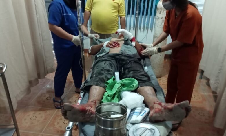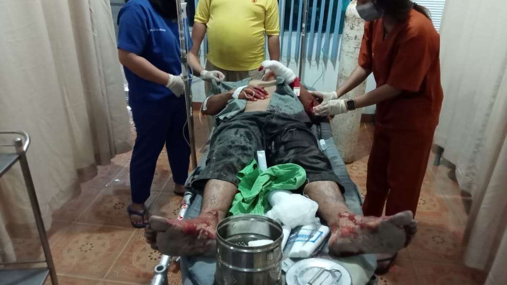 Dalam keadaan terluka parah korban langsung dilarikan ke RSU Delia. Disana dia mendapat perawatan secara intensif. Akibat kejadian itu korban harus menderita luka bacok pada bahagian telapak tangan kiri putus terbacok, jari jempol dan jari telunjuk turut di telapak tangan yang terbacok, luka bacok di siku lengan kanan lbr.6 cm, luka bacok di siku lengan kiri lbr 5 Cm.