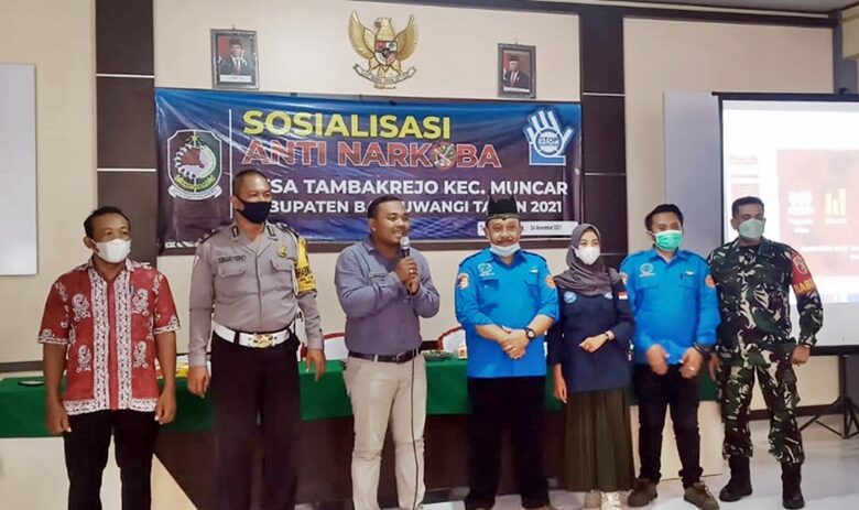BeritaNasional.ID, BANYUWANGI – Dalam rangka mewujudkan Desa Tambakrejo bersih dari narkoba (Bersinar), pemerintah desa dan tiga pilar, yakni Kepala desa, Bhabinkamtibmas beserta Babinsa menggelar sosialisasi penyuluhan tentang “Bahaya Narkoba kepada Pemuda dan Pemudi” pada Kamis (4/11/21) sore.