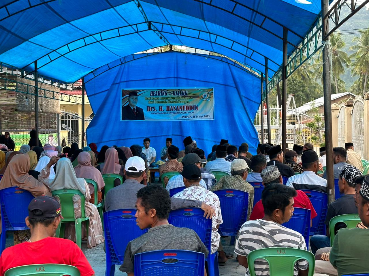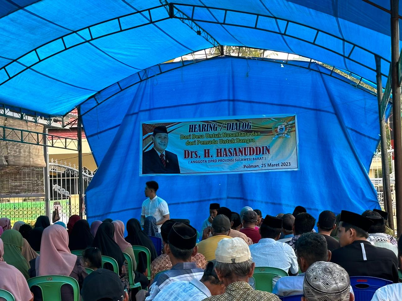 BeritaNasional.id.Polman.Sulbar–Anggota DPRD Sulbar, Drs. H. Hasanuddin temu muka dalam gelaran hearing dialog. bersama tokoh masyarakat, tokoh agama dan tokoh pemuda. Puluhan bahkan ratusan masyarakat yang hadir dalam kegiatan di halaman pribadi miliknya, di desa Dakka kec Tapango Kab Polman Sulbar.