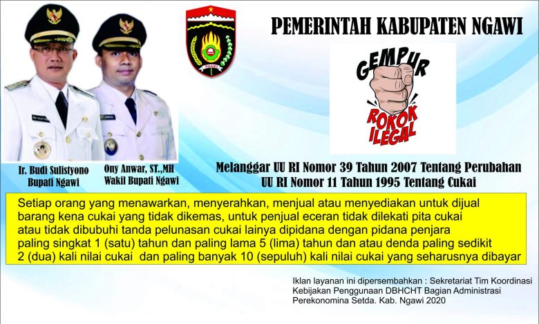 Iklan layanan ini dipersembahkan : Sekretariat Tim Koordinasi Kebijakan Penggunaan DBHCHT Bagian Administrasi Perekonomina Setda. Kab. Ngawi 2020