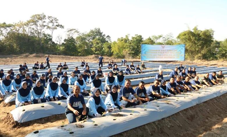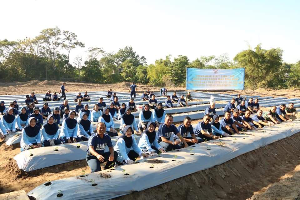 BERITANASIONAL.ID, YOGYAKARTA – Gubernur Akademi Angkatan Udara (AAU) Marsekal Muda TNI Eko D. Indarto, S.I.P., M.Tr(Han) didampingi Ketua PIA Ardhya Garini Cabang BS AAU Ny. Asiana Eko D. Indarto beserta seluruh Civitas Akademika AAU melaksanakan penanaman bibit cabai dan penebaran bibit ikan nila, bertempat di samping AAU Driving Range, Senin (22/5/2023).