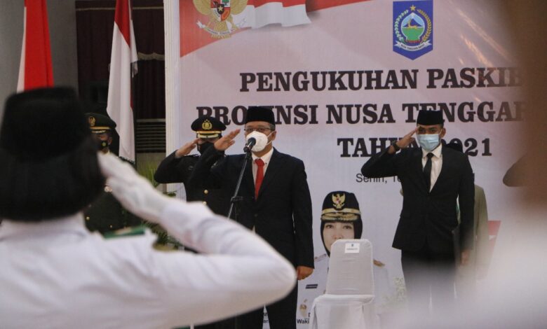BeritaNasional.id, Mataram – Gubernur NTB Dr. H. Zulkieflimansyah mengukuhkan Pasukan Pengibar Bendera Pusaka (Paskibraka) Provinsi Nusa Tenggara Barat dalam rangka Peringatan Hari Ulang Tahun (HUT) ke-76 Kemerdekaan Republik Indonesia berlangsung di Pendopo Tengah Gubernur, Senin (16/08).