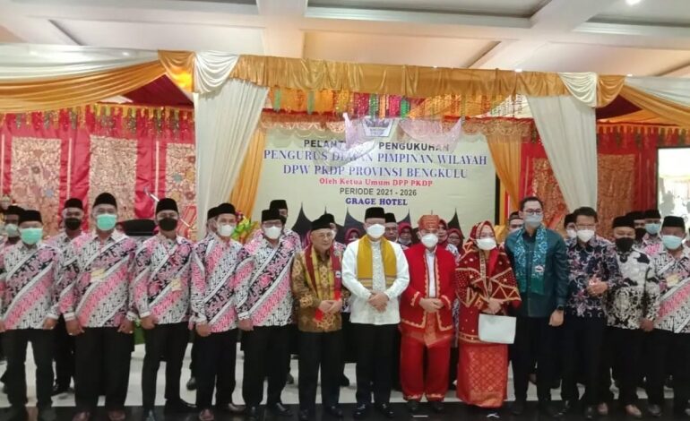 Bengkulu, Beritanasional.id – Pengukuhan Hasanuddin Adnan sebagai Ketua DPW Persatuan Keluarga Daerah Piaman (PKDP) Provinsi Bengkulu Masa Bhakti 2021-2026 berlangsung di Aula Grage Hotel Bengkulu, 27/11.