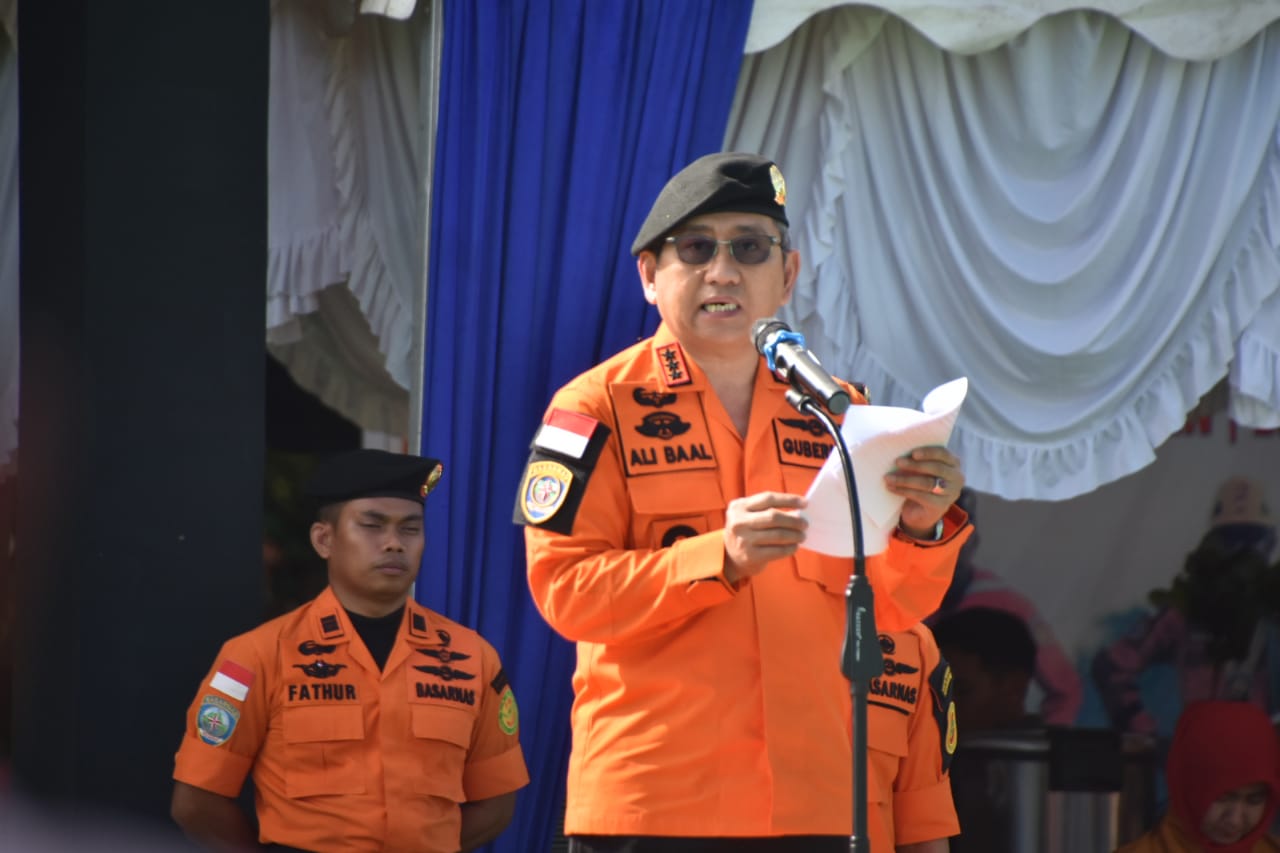 Gubernur Sulbar Ali Baal Masdar membacakan sambutan tertulis Basarnas RI. Ia menyampaikan tentang pencarian dan pertolongan yang sudah menjadi tumpuan dan harapan masyarakat , terutama dalam penyelenggaraan operasi SAR . Meliputi penyelenggaraan operasi SAR yang meliputi, penyelenggaraan operasi pencarian, penyelamatan pertolongan dan evaluasi pada kecelakaan penerbangan, pelayaran, kebencanaan pada tahap tanggap gawat darurat serta kondisi membahayakan manusia di seluruh wilayah tanah air.