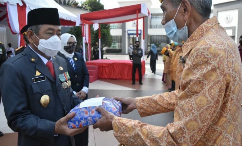 Usai peringatan Hari Pahlawan, Gubernur Sulbar, Ali Baal Masdar menyerahkan bingkisan kepada sejumlah veteran yang ada di Sulbar.