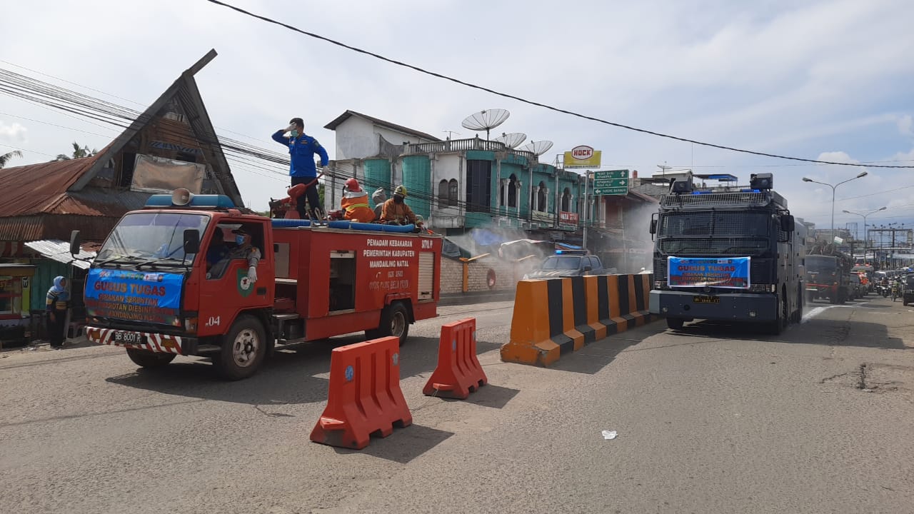 “Penyemprotan disinfektan secara massal tersebut menggunakan satu unit Kenderaan Dinas Water Canon Polres Madina dan tiga unit Damkar Pemkab Madina serta penyemprotan manual oleh personel Polres Madina, TNI, BPBD dan Dinas Kesehatan serta Satpol PP Pemkab Madina di Tiga lokasi keramaian,” sebut Kapolres Madina AKBP Horas Tua Silalahi, S.I.K, M.Si.