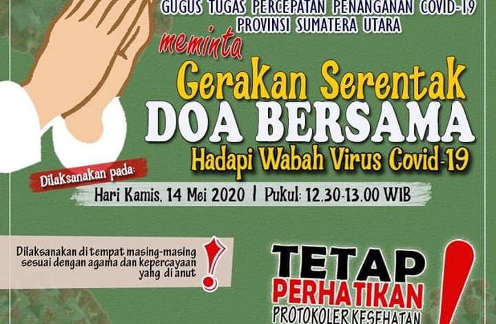 “Kita mengimbau kepada seluruh masyarakat Sumut untuk melaksanakan doa bersama secara serentak pada tanggal 14 Mei 2020, pukul 12.30-13.00 WIB,” ujar Sabrina.