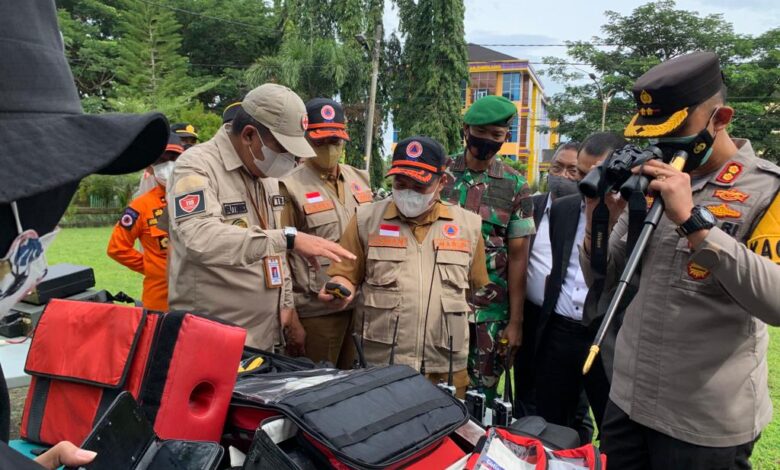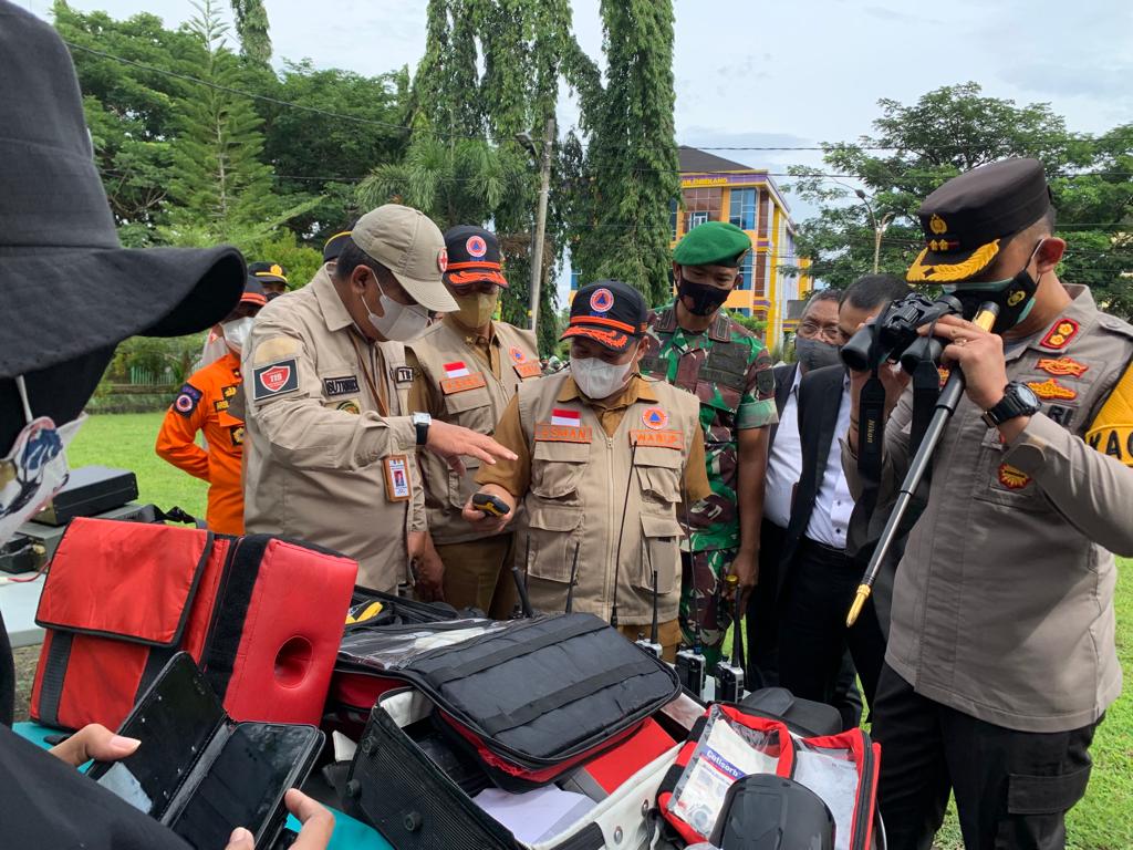 Wakil Bupati Enrekang Asman saat memimpin Apel Siaga Bencana didampingi Forkompimda Kabupaten Enrekang pemeriksaan pasukan sekaligus mengecek kondisi alat-alat yang dimiliki BPBD dan Dinkes Enrekang