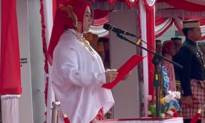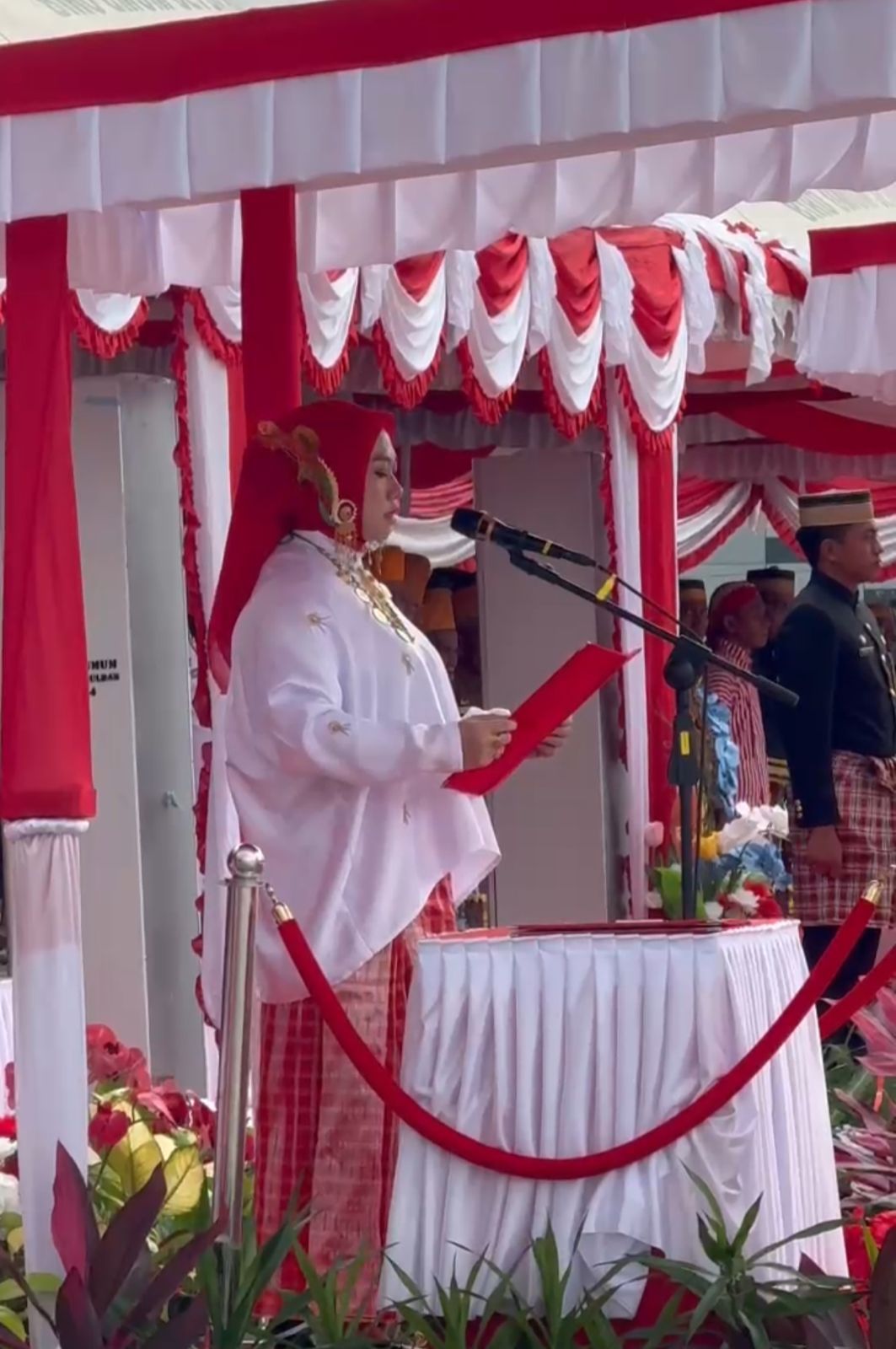 Semetara Ketua DPRD Sulbar Dr Amalia mendapat kehormatan membacakan Naskah Proklamasi Kemerdekaan Republik Indonesia.