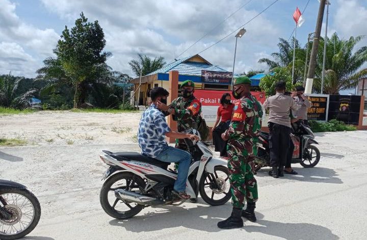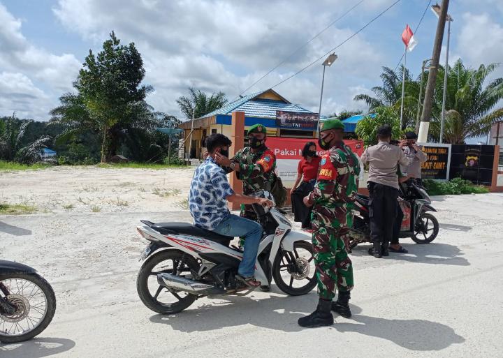 Hambat Merebaknya Covid-19, Koramil 1013-03/T. Tengah Bersama Tim Terpadu Tegakkan Protkes