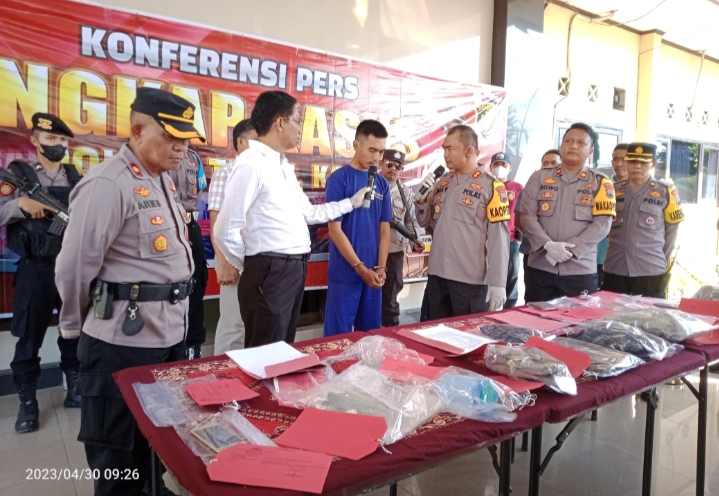 Hal itu disampaikan Kapolres Tegal Kota AKBP Jaka Wahyudi didampingi Wakapolres dan PJU Polres Tegal, dalam konferensi pers ungkap kasus di Loby Mapolres Tegal Kota, Minggu (30/4/2023).
