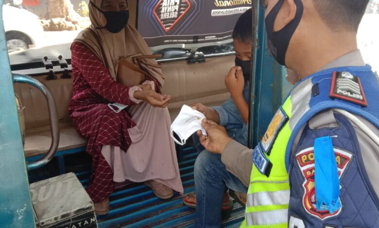 Hari Ke-11 Ops Patuh Maung 2021, Ditlantas Polda Banten Bagikan 2.355 Masker