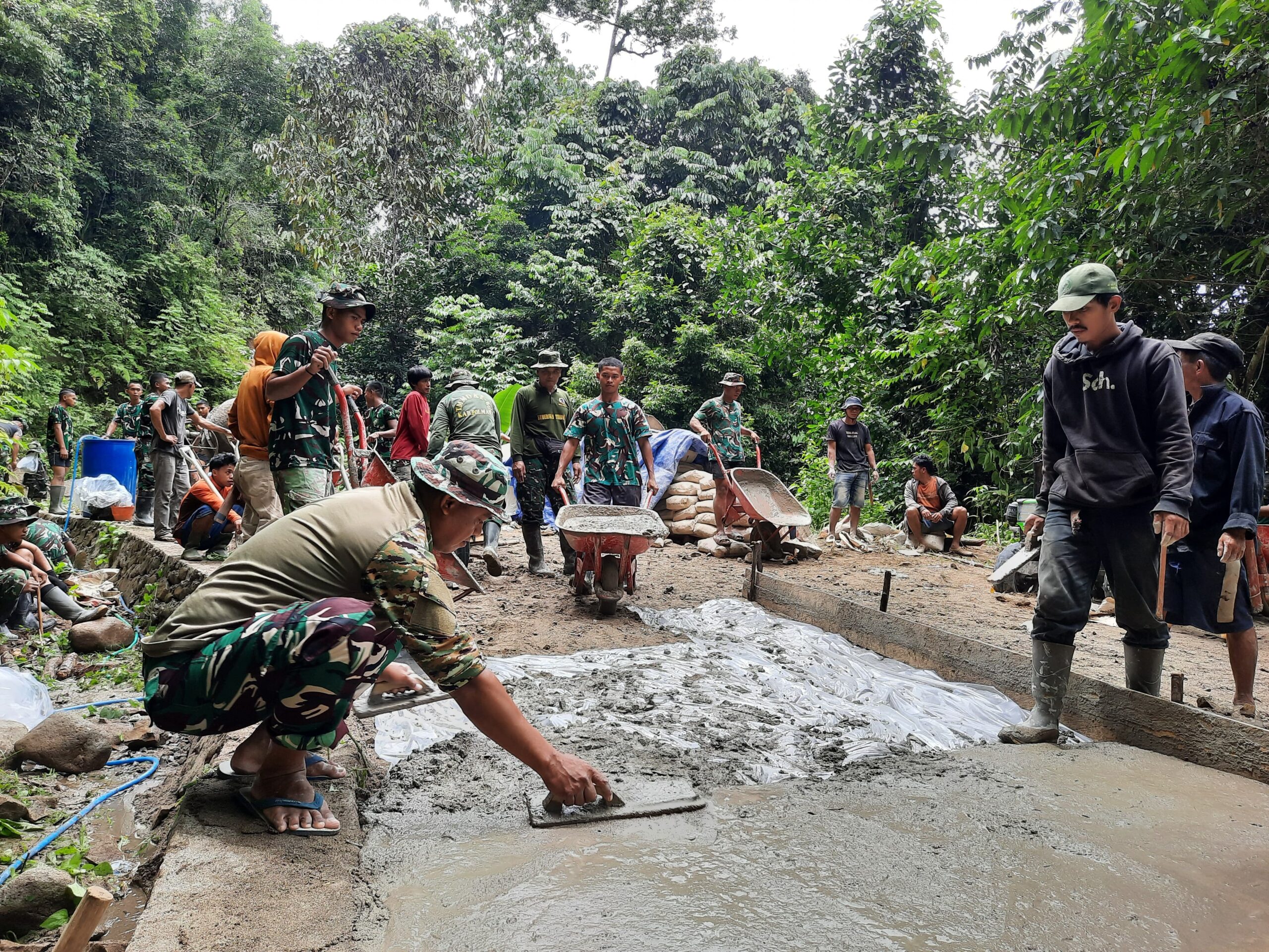 “Memasuki hari ke-15 setelah pembukaan, progres rabat beton sudah mencapai 58 persen. Walaupun dalam suasana puasa, semangat anggota satgas dan masyarakat tetap tinggi,” ujarnya di lokasi kegiatan.