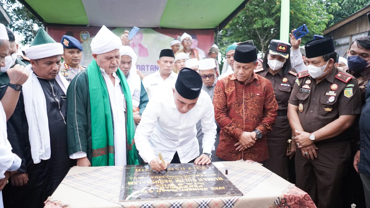 Terkait bantuan pembangunan rumah suluk ini Insya Allah saya akan memberikan bantuan yang dibutuhkan untuk melanjutkan pembangunan rumah suluk. Saya juga telah menyampaikan kepada Asisten Pemerintahan Provsu besok akan kembali kesini untuk mengecek apa saja kiranya yang perlu diperhatikan untuk dibantu, papar Gubsu Edy Rahmayadi