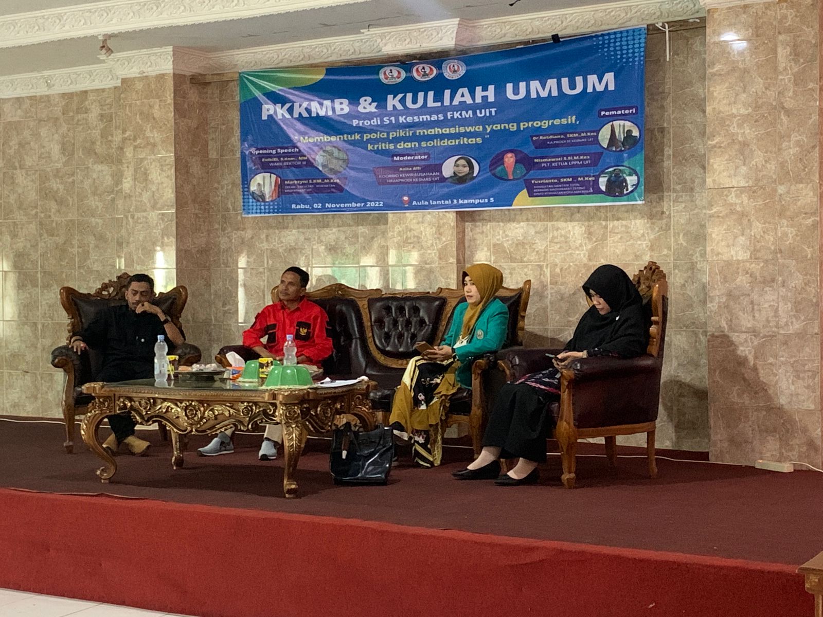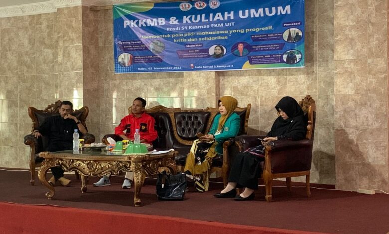 Wakil Rektor 3, Muh. Zulqifli, S.Kom., MM.,M.Si., Membuka kegiatan Kuliah Umum di FKM, dengan tema “Membentuk Pola Pikir Mahasiswa yang Progresif Kritis dan Solidaritas” Besar harapan kami agar Mahasiswa Baru ini lebih kritis dan solid menuju “UIT-ku Kuat, UIT-ku Hebat” untuk Indonesia.” kata mantan Dekan Fikom